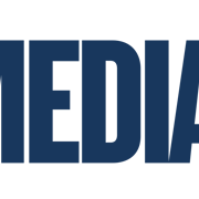 A vibrant newsroom with journalists working on computers and screens showing breaking news.